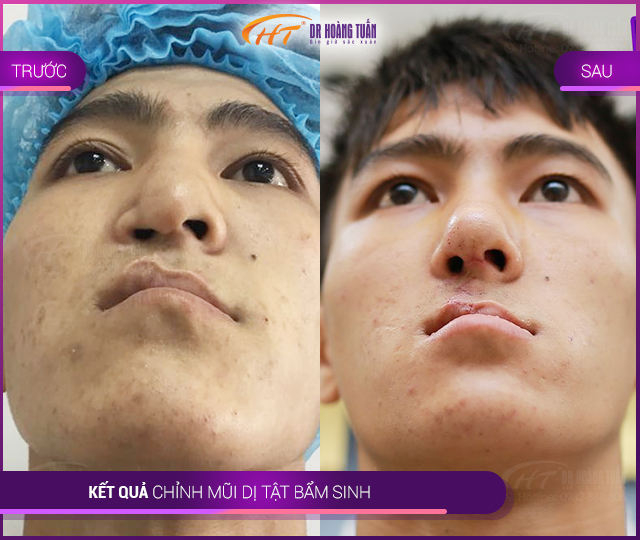 - Quá trình chỉnh hình các ca mũi dị tật là một trong những thử thách khó khăn nhất trong lĩnh vực tạo hình mũi. Sửa mũi dị tật đòi hỏi bác sĩ thực hiện phải có chuyên môn cao và giàu kinh nghiệm. Thẩm mỹ Hoàng Tuấn đã phẫu thuật thành công cho rất nhiều trường hợp mũi biến dạng do sứt môi hở hàm ếch.