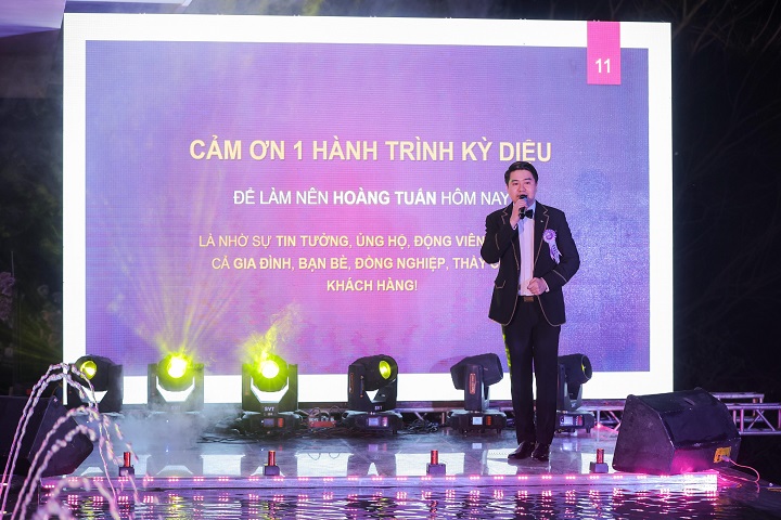 Chủ đề của đại tiệc kỷ niệm lần này là “Cảm ơn 1 hành trình kỳ diệu”. Ông Hoàng Thanh Tuấn gửi lời tri ân tới gia đình, bạn bè, đồng nghiệp, thầy cô và khách hàng đã đồng hành, tin tưởng và ủng hộ; đặc biệt, là hơn 200 nhân viên – những người đã, đang gắn bó, cống hiến để cùng ông tạo nên vị thế của Thẩm mỹ Hoàng Tuấn hôm nay.