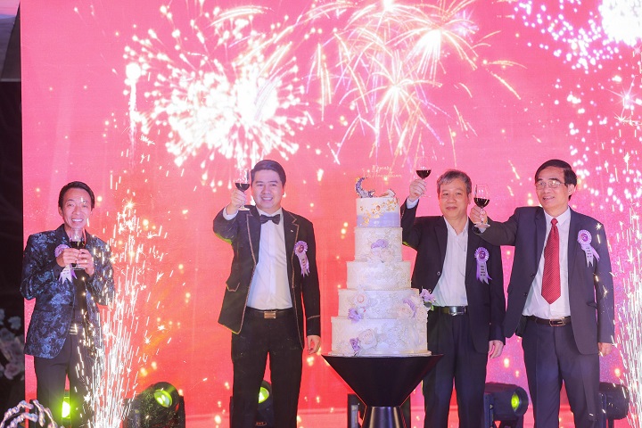 Ông Hoàng Thanh Tuấn cùng các vị khách quý cắt bánh và nâng ly chúc mừng Thẩm mỹ Hoàng Tuấn tròn 10 năm tuổi!