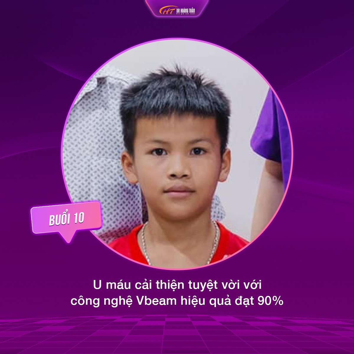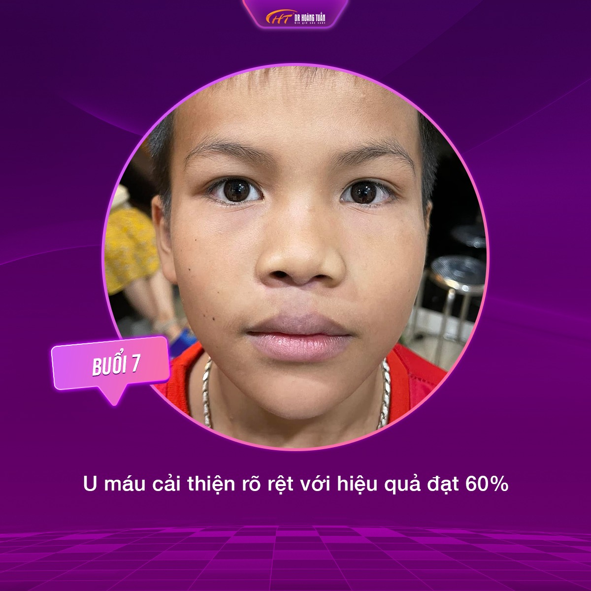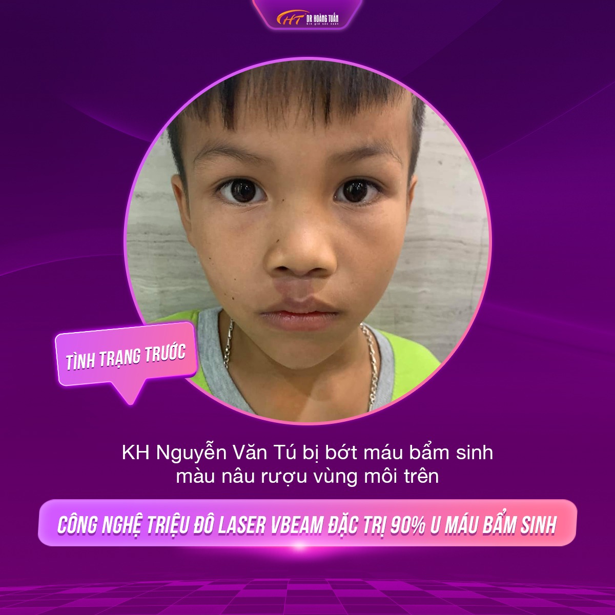 Tại Dr Hoàng Tuấn sở hữu máy laser Vbeam – công nghệ tiên tiến nhất trong điều trị u máu, gia đình bé Nguyễn Văn Tú đã đưa bé đến điều trị. Sau 7 buổi trị liệu, mảng bớt của bé đã cải thiện được hơn 90%, các vùng da xung quanh không có bất kỳ tổn thương nào.