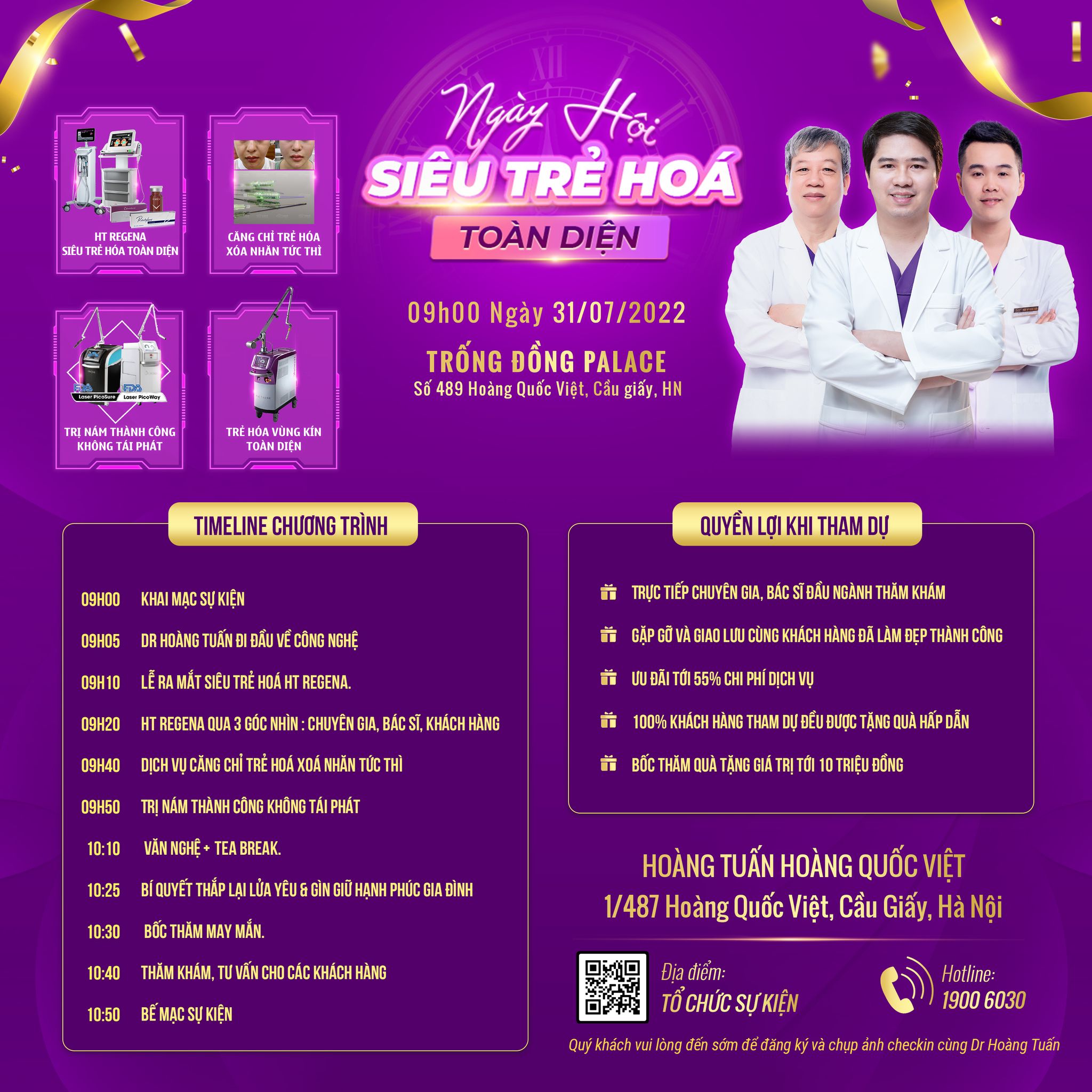 Ngày hội Siêu Trẻ hóa toàn diện là sự kiện quy tụ những phương pháp độc quyền của Thẩm Mỹ Hoàng Tuấn về trẻ hoá giúp khách hàng Xóa tan dấu vết của thời gian
