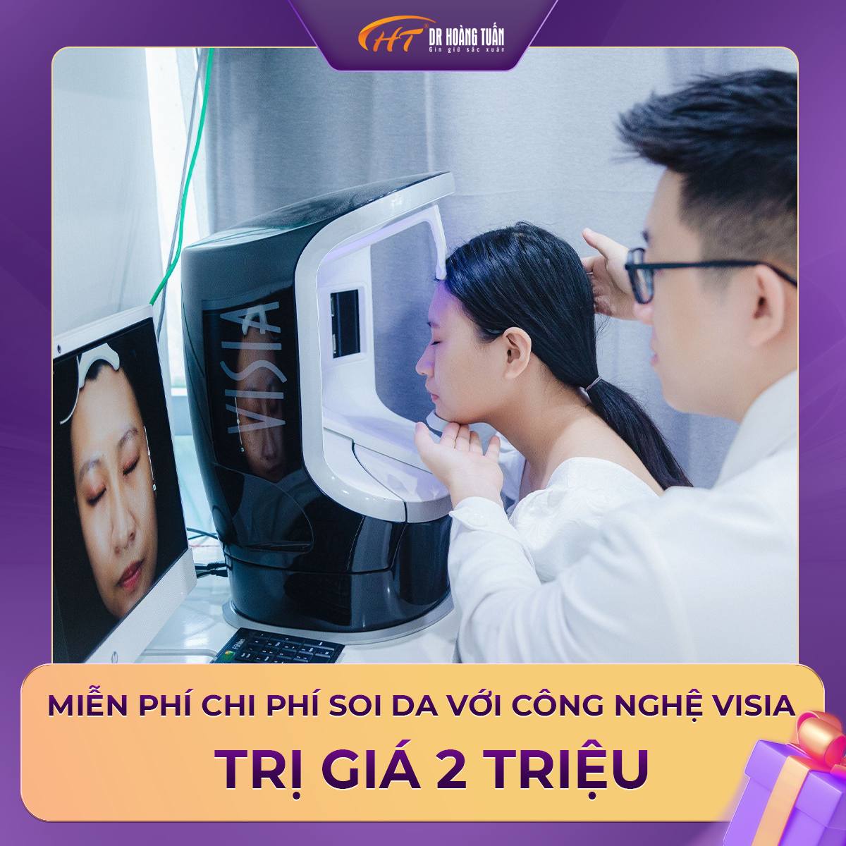 Khách hàng được soi da miễn phí với công nghệ soi da Visa trị giá 2 triệu, sử dụng công nghệ RBX độc quyền từ Canfield để đánh giá tình trạng như sắc tố melanin dưới bề mặt da một cách chính xác. Điều này giúp các bác sĩ đánh giá chính xác mức độ nám da để lên phác đồ điều trị phù hợp nhất cho từng trường hợp.