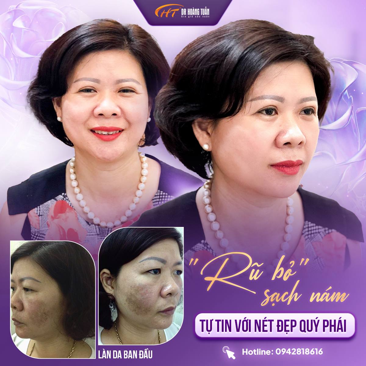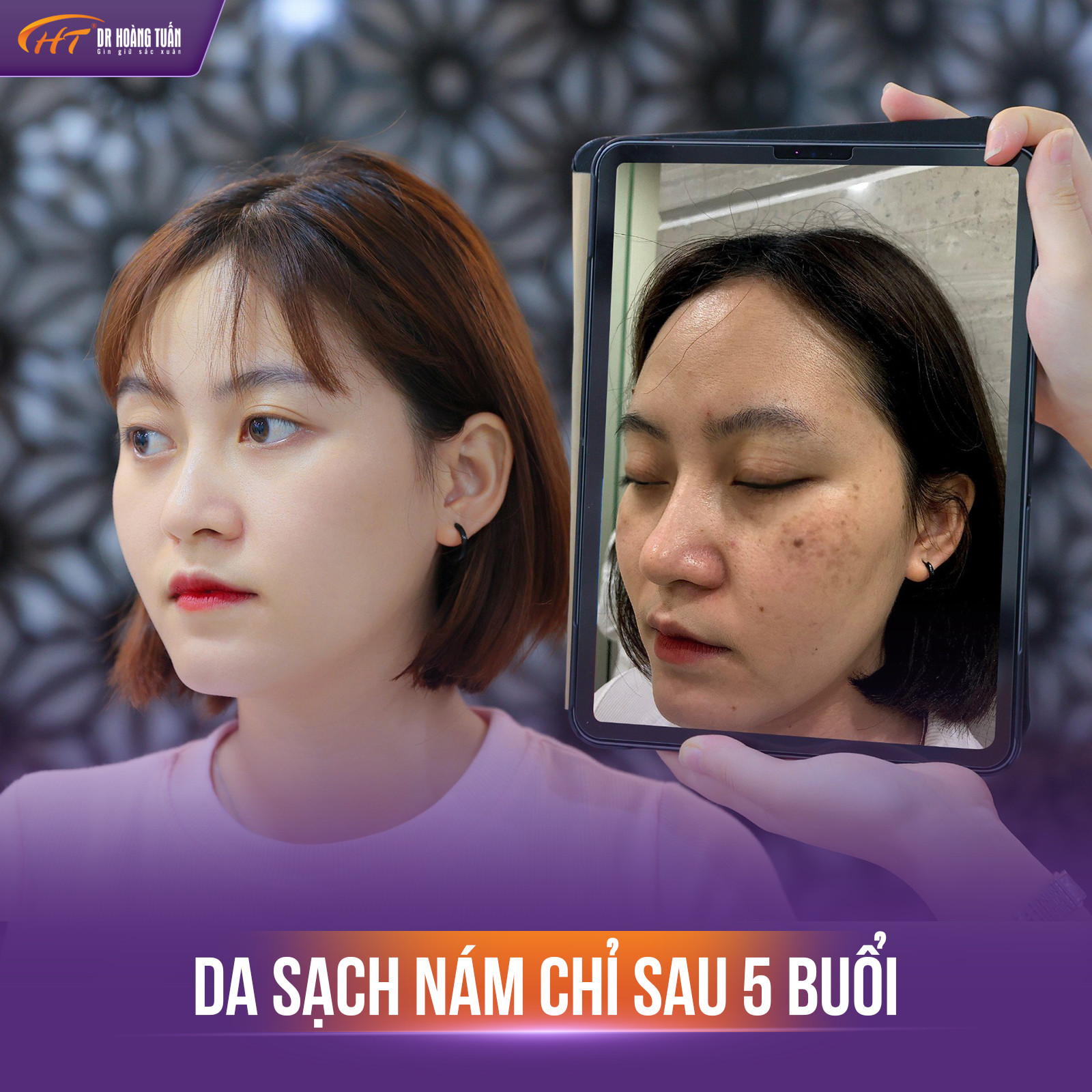 Trong phác đồ điều trị nám tại Thẩm Mỹ Hoàng Tuấn, khách hàng sẽ được điều trị trực tiếp với bác sĩ da liễu kinh nghiệm, chuyên môn mang đến hiệu quả tốt nhất, chỉ sau 3-5 buổi điều trị nám, khách hàng đã thấy cải thiện rõ ràng.