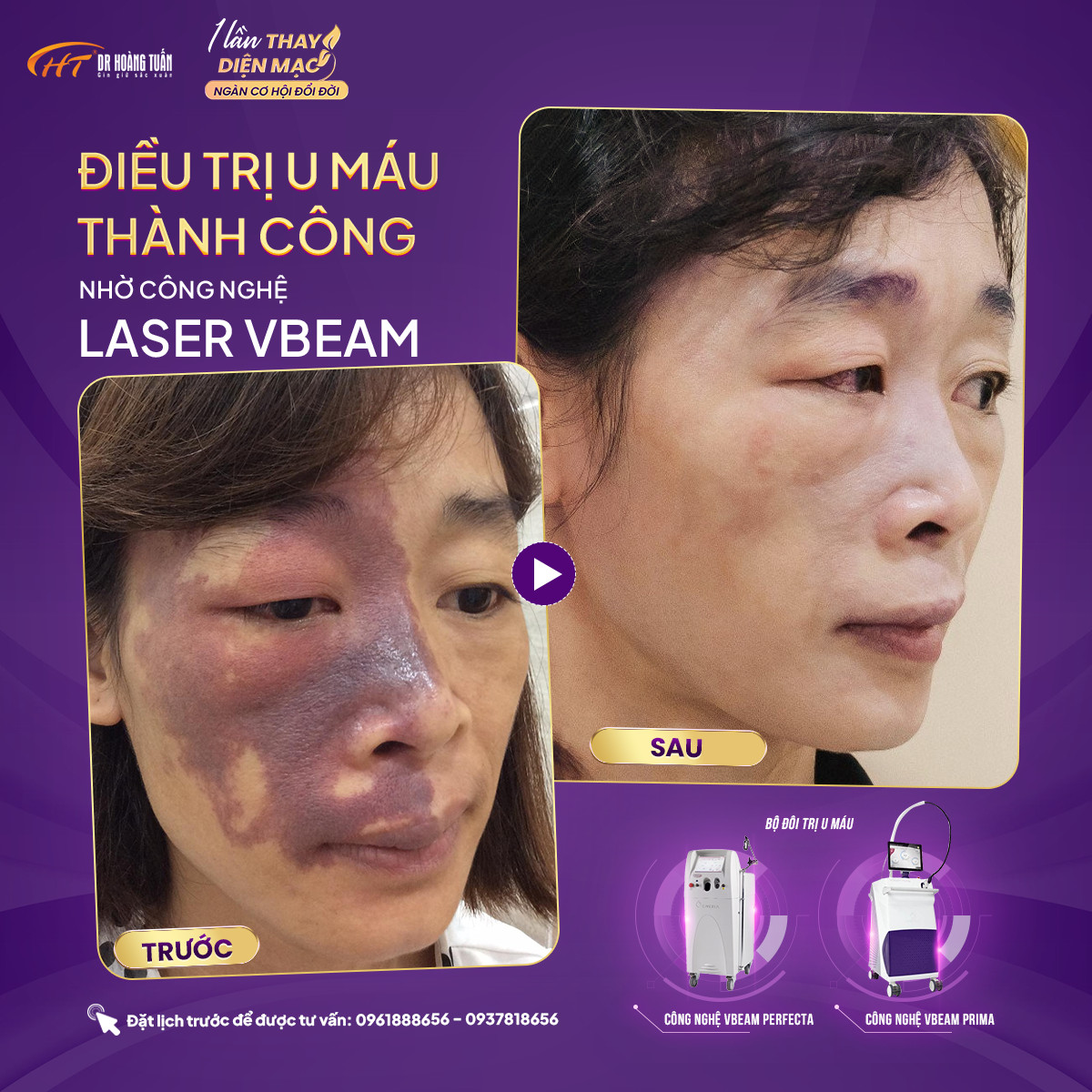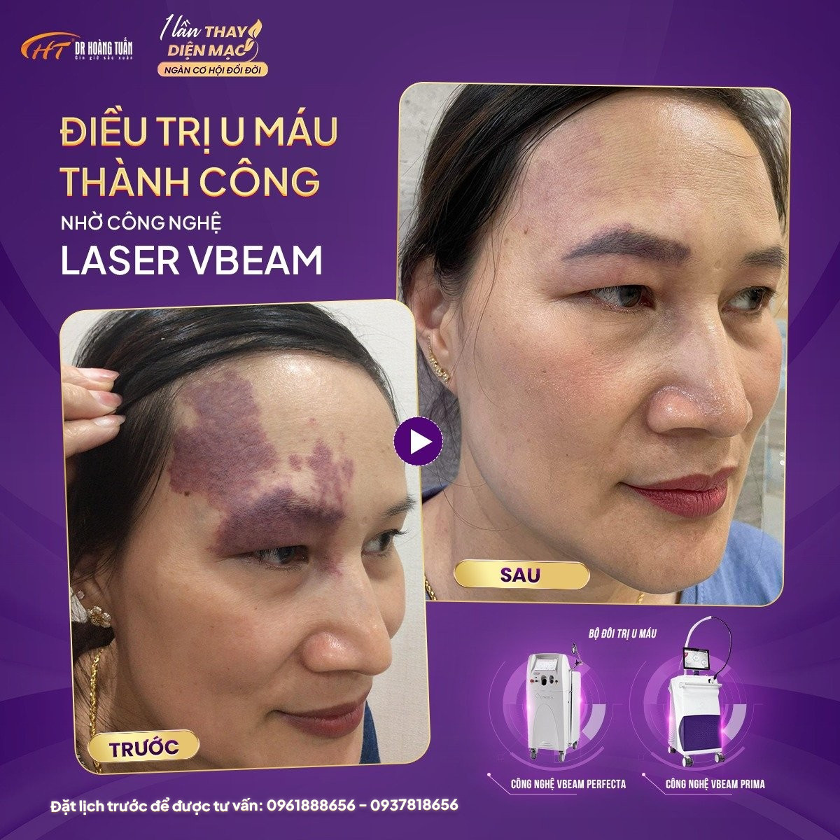 Hiện nay, Thẩm Mỹ Hoàng Tuấn là đơn vị tiên phong tại Việt Nam sở hữu công nghệ laser Vbeam Perfecta trong điều trị u máu, không để lại sẹo, không đau, thời gian điều trị khoảng 40 phút. Sau khi điều trị, khách hàng không phải mất nhiều thời gian nghỉ dưỡng. Phương pháp điều trị u máu bằng laser này mang lại hiệu quả cao và an toàn cho người bệnh, có thể ứng dụng để điều trị bệnh u máu cho trẻ em.