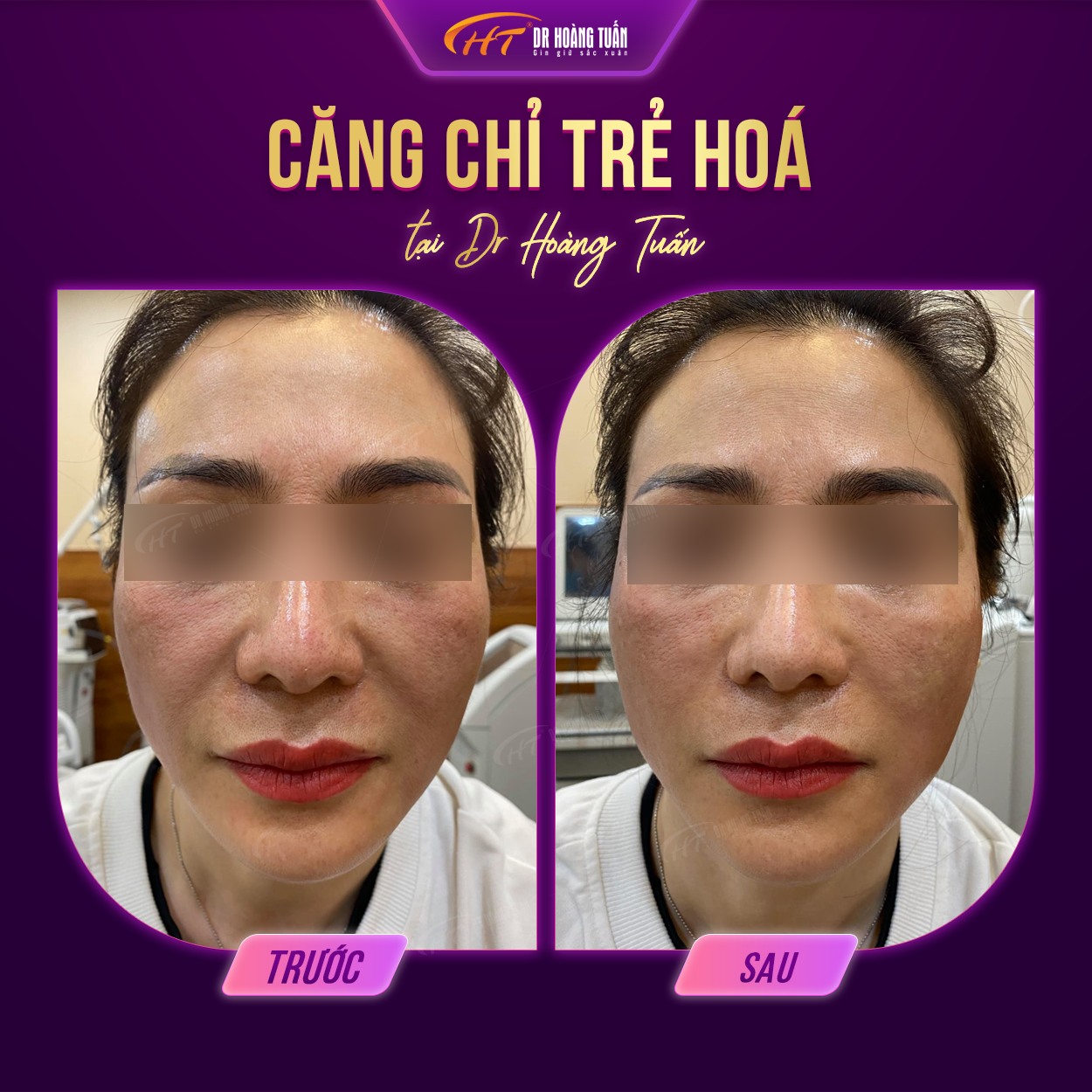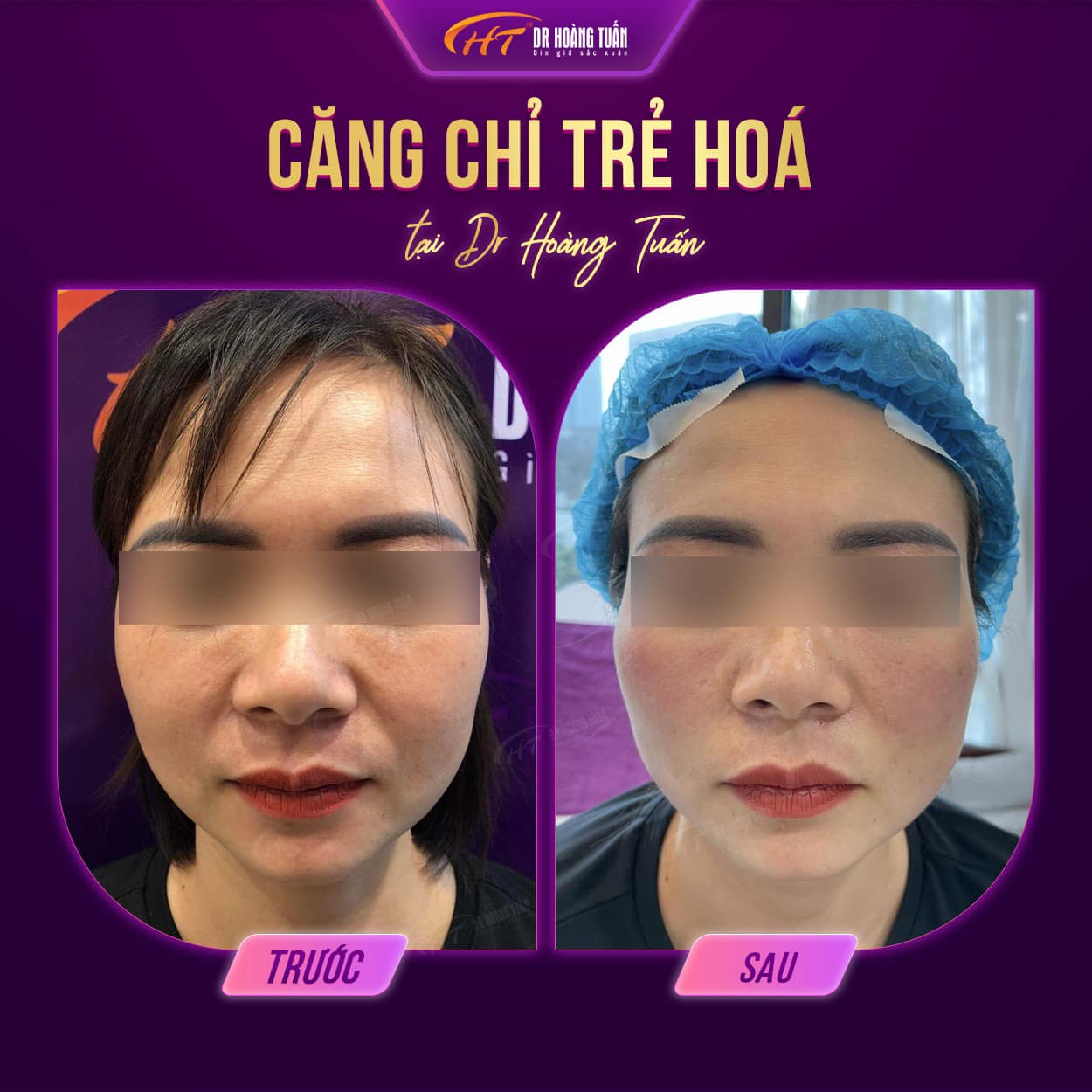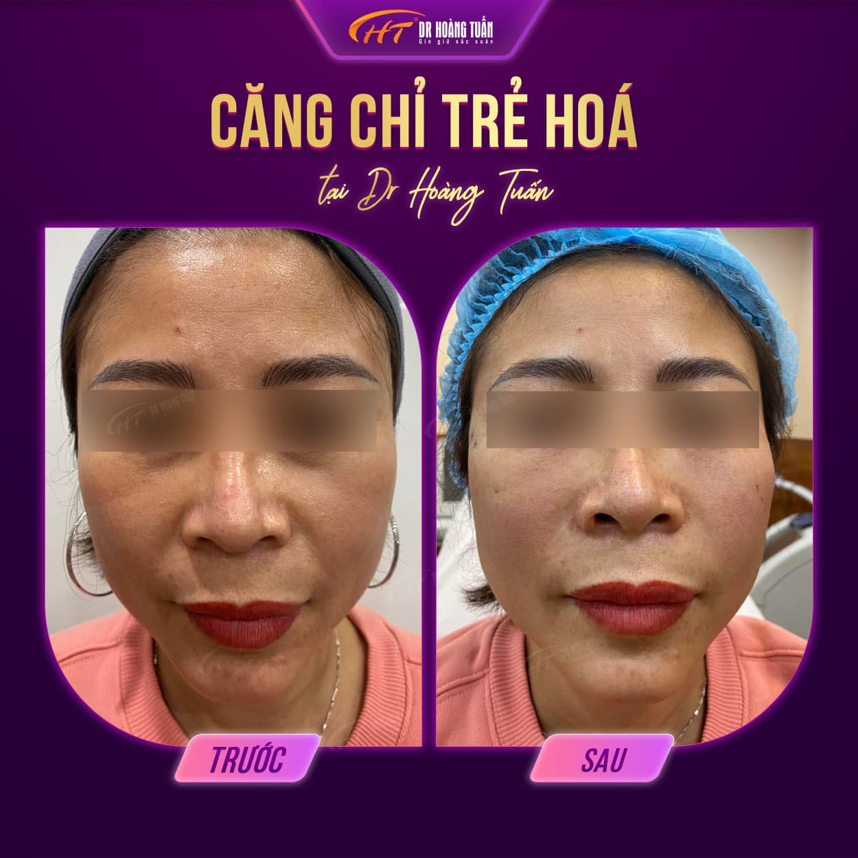 Trên đây là những hình ảnh căng da mặt bằng chỉ giúp bạn hiểu rõ hơn về hiệu quả mà phương pháp này mang lại. Có thể nói rằng, phương pháp này giúp bạn sở hữu được cho mình một làn da đẹp và săn chắc. Để được thực hiện căng da mặt bằng chỉ tại Dr Hoàng Tuấn, vui lòng liên hệ ngay đến hotline 0931858636 – 0961888656 – 0937818656 – 0942818616 để được tư vấn miễn phí.