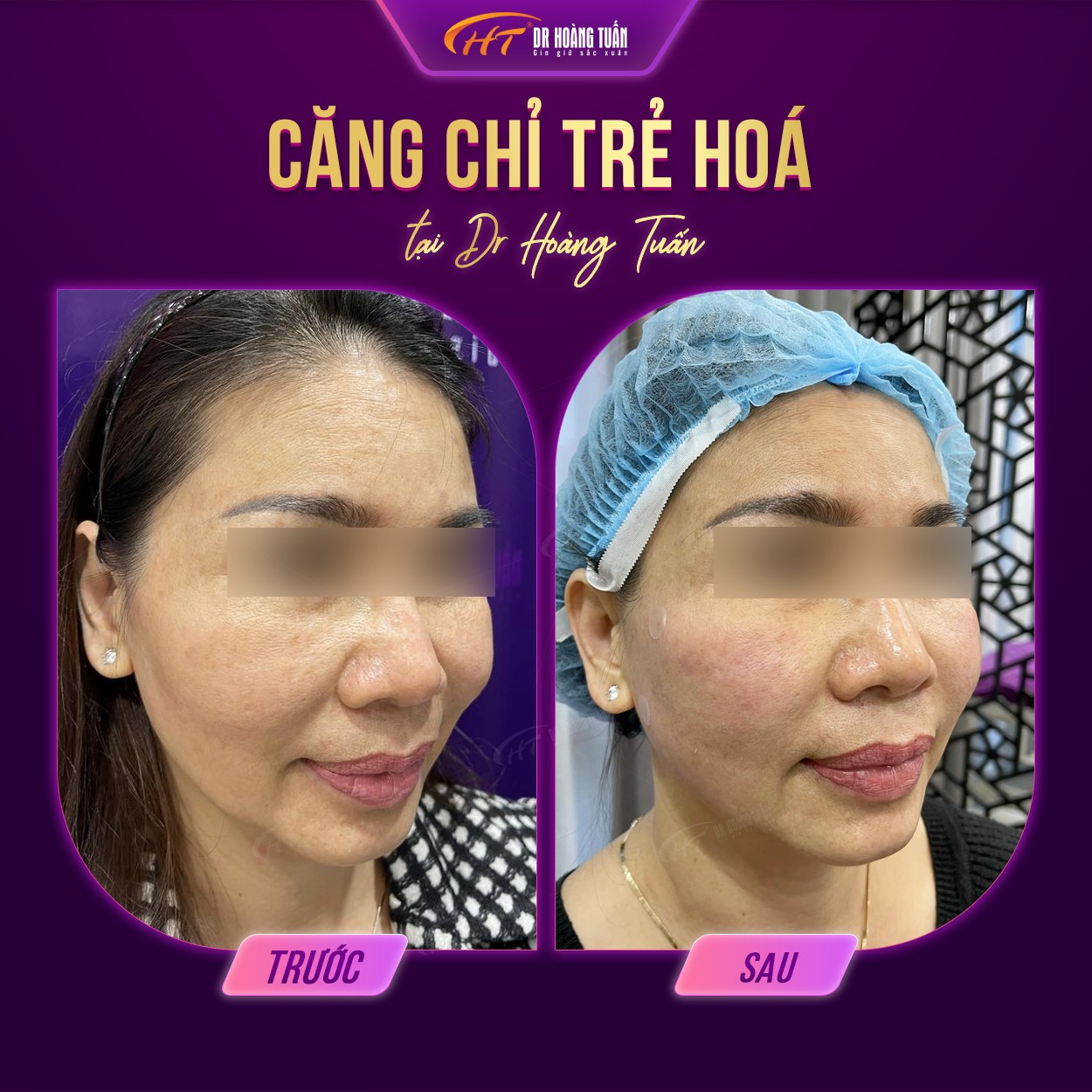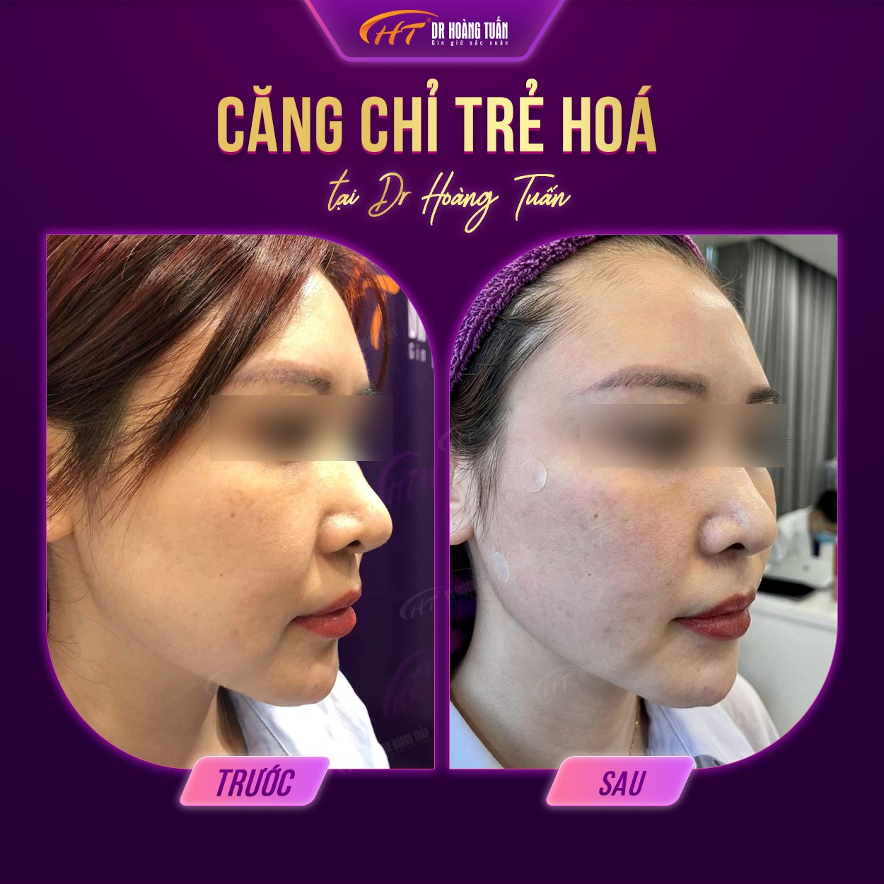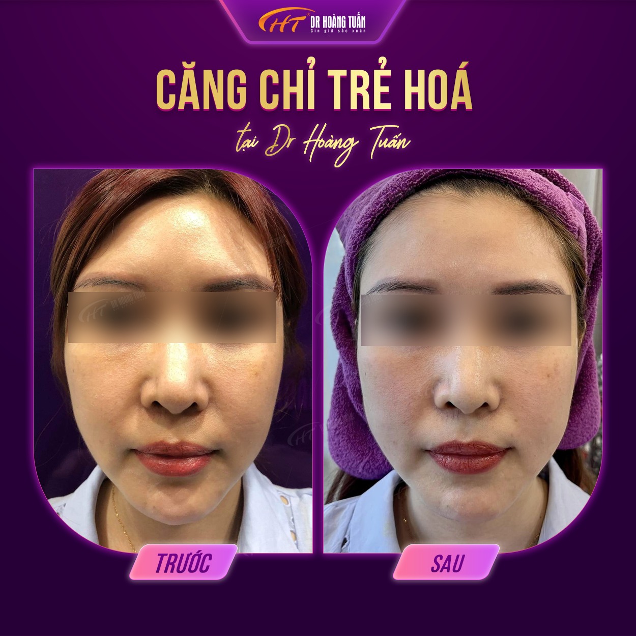 Trên đây là những hình ảnh căng da mặt bằng chỉ giúp bạn hiểu rõ hơn về hiệu quả mà phương pháp này mang lại. Có thể nói rằng, phương pháp này giúp bạn sở hữu được cho mình một làn da đẹp và săn chắc. Để được thực hiện căng da mặt bằng chỉ tại Dr Hoàng Tuấn, vui lòng liên hệ ngay đến hotline 0931858636 – 0961888656 – 0937818656 – 0942818616 để được tư vấn miễn phí.
