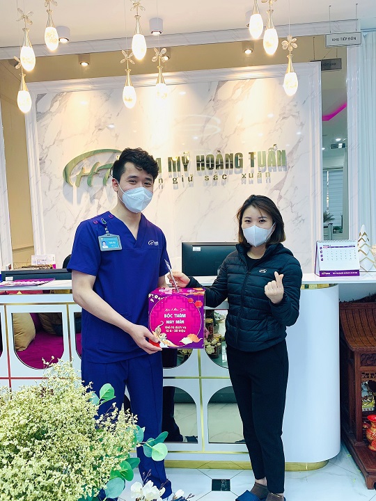 Bác sĩ Hoàng Tuấn lì xì đầu năm mới Nhâm Dần 2022 cho toàn bộ khách hàng đến làm đẹp và toàn thể nhân viên.