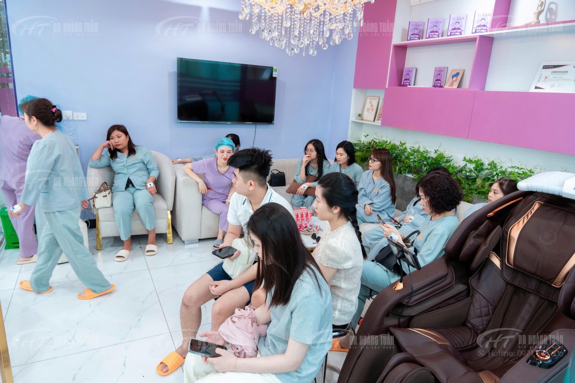 Không khí tại Dr. Hoàng Tuấn trong ngày này được bao trùm bởi sự tươi vui và hào hứng. Tiếng trò chuyện rộn ràng, những nụ cười thân thiện giữa khách hàng và đội ngũ chuyên viên đã tạo nên một bầu không khí đầy tích cực. Nhiều khách hàng chia sẻ rằng họ đã lên kế hoạch làm đẹp từ trước kỳ nghỉ để có thể tự tin hơn khi tham gia các buổi gặp gỡ, du lịch cùng gia đình và bạn bè.