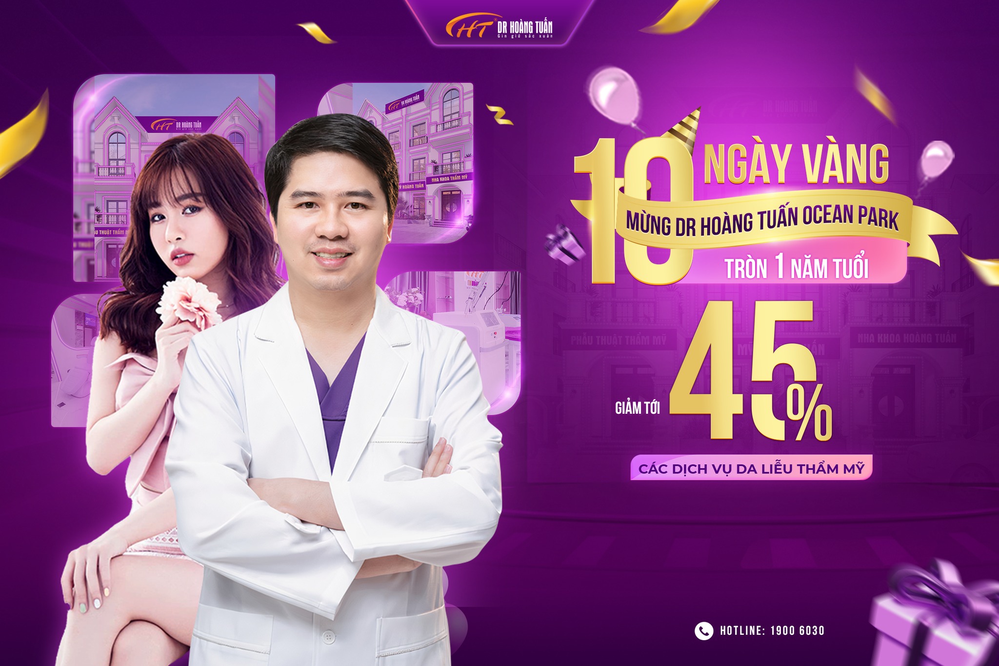 Để mang lại cơ hội làm đẹp cho mùa hè rực rỡ 2023, Dr Hoàng Tuấn gửi đến khách hàng chương trình MỪNG DR HOÀNG TUẤN OCEAN PARK TRÒN 1 TUỔI với ưu đãi giảm giá cực sâu cùng nhiều quà tặng hấp dẫn cho các dịch vụ da liễu thẩm mỹ.