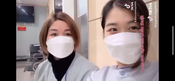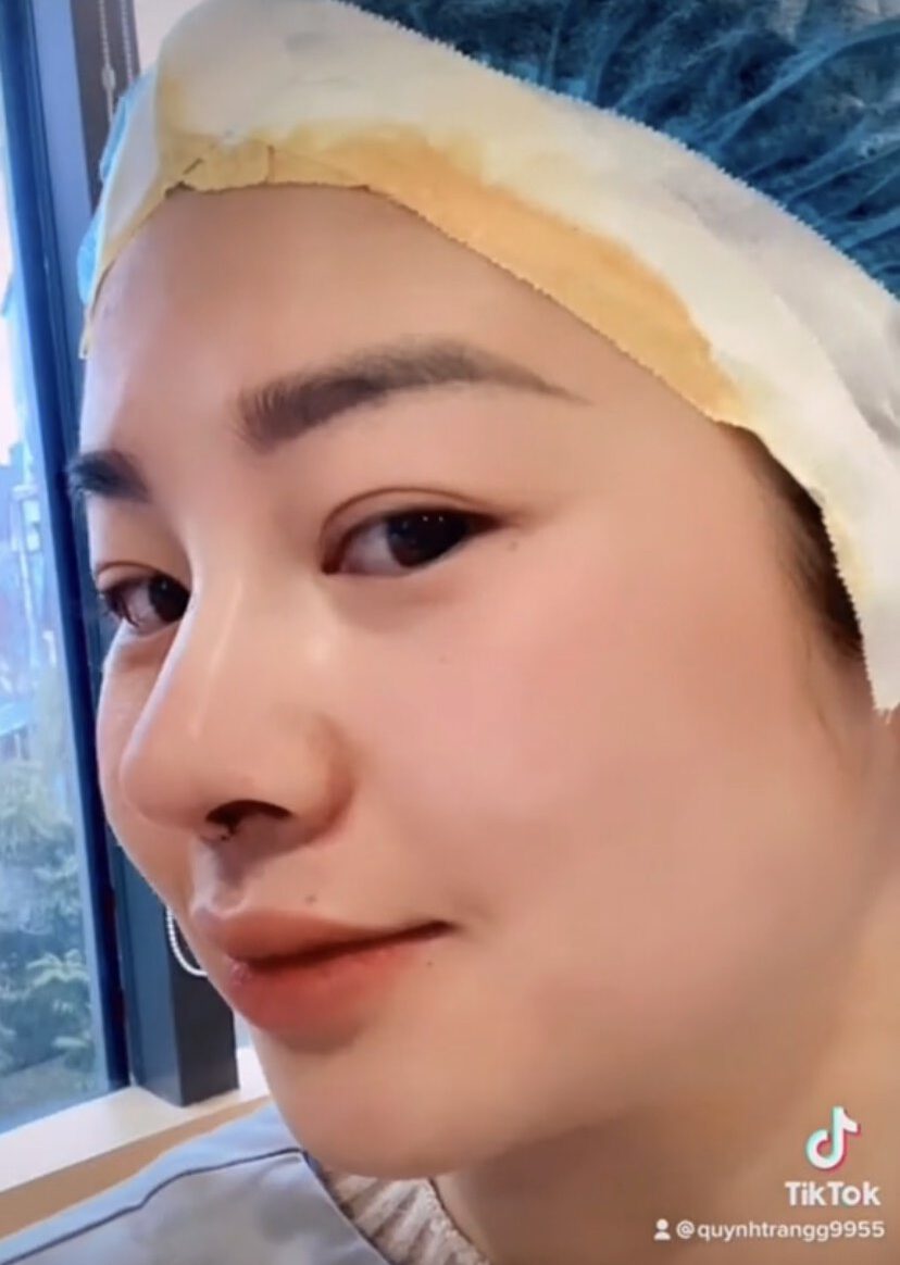 Sau đó ngồi ở phòng phẫu thuật chờ làm, hôm đó em đi cùng mẹ, mẹ em làm nâng cung mày, còn em thì nâng mũi.