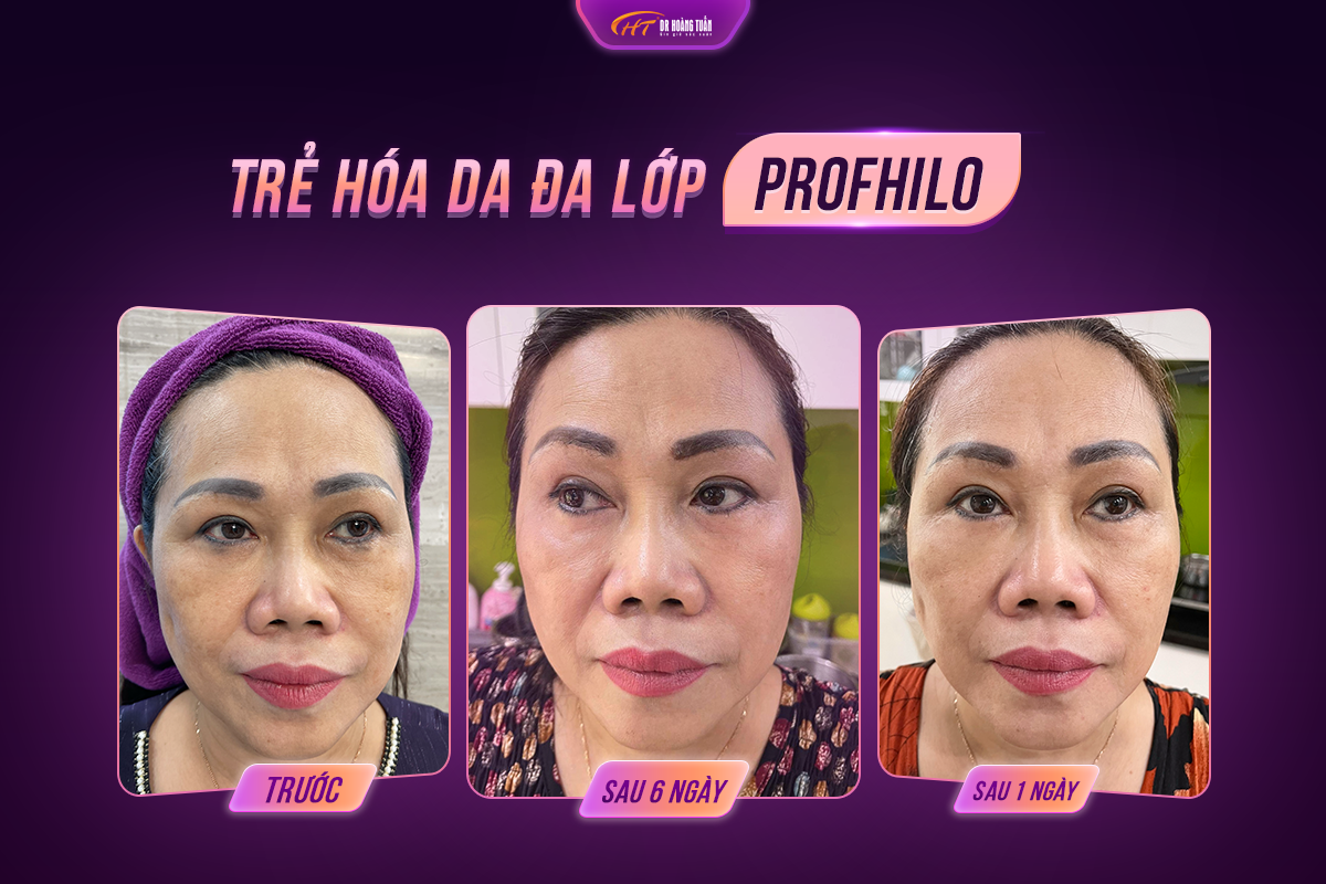 Tiêm HA trẻ hóa 5 điểm PROFHILO thúc đẩy tái cấu trúc da đa lớp, giúp tăng sinh collagen – elastin, nuôi dưỡng tế bào mỡ. Từ đó cải thiện nếp nhăn, cấp ẩm cho làn da căng bóng, tăng đàn hồi săn chắc da. Đây là phương pháp trẻ hóa da an toàn, hiệu quả, giảm thời gian chờ và cảm giác châm chích khi tiêm.