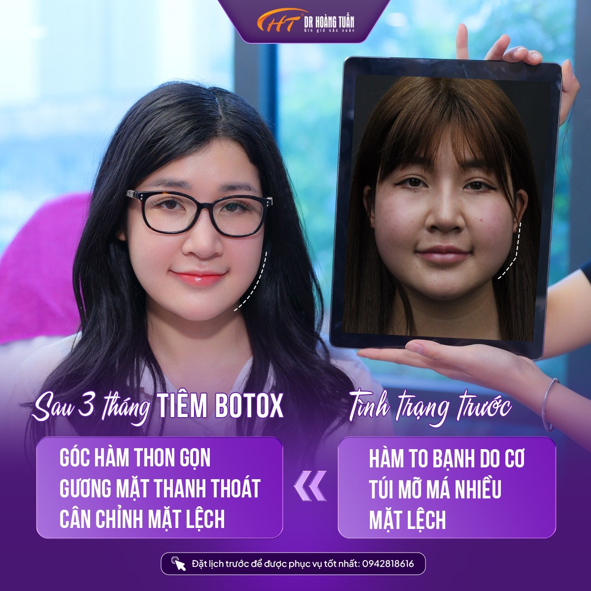 Theo bác sĩ, chuyên gia thẩm mỹ đánh giá, tiêm botox là giải pháp giúp căng da, xóa nhăn, thon gọn góc hàm an toàn và hiệu quả. Khách hàng nên lựa chọn cơ sở thẩm mỹ uy tín và đáng tin cậy, sản phẩm tiêm rõ xuất xứ, nguồn gốc, và được chính bác sĩ kinh nghiệm tư vấn để đưa ra liệu lượng Botox thích hợp.