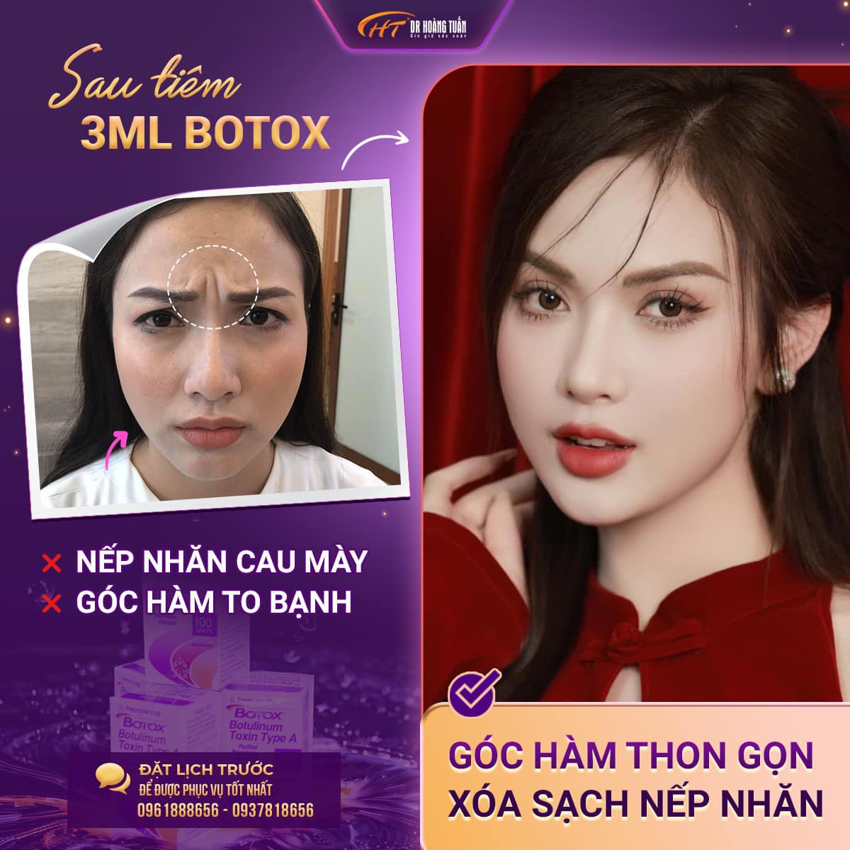 Với những thông tin chia sẻ trên đây, hy vọng giúp bạn hiểu rõ hơn về phương pháp làm đẹp tiêm Botox. Điều quan trọng là bạn lựa chọn tiêm botox tại các cơ sở thẩm mỹ uy tín, bác sĩ có chuyên môn cao. Liên hệ ngay Thẩm Mỹ Hoàng Tuấn - hotline 0961888656 - 0902858616 - 0942818616 để được tư vấn miễn phí.
