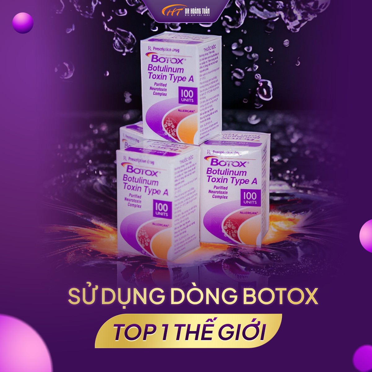 Thẩm Mỹ Hoàng Tuấn là đơn vị hàng đầu ở miền Bắc trong kỹ thuật tiêm Botox hiện đại và chất lượng. Sở hữu đội bác sĩ kinh nghiệm, chuyên môn cao, cùng sản phẩm tiêm botox được FDA chứng nhận an toàn. Liệu trình tiêm Botox là phương pháp thẩm mỹ được ưa chuộng bởi khả năng xóa nếp nhăn, khôi phục sự trẻ trung cho khách hàng.